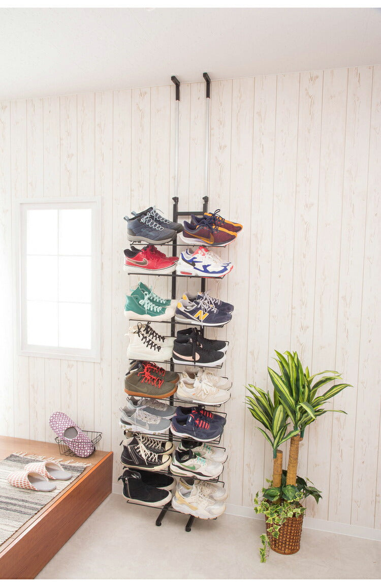 シューズラック 魅せるシューズラック 16足 突っ張り式 収納 棚 靴ラック 収納 ラック 玄関 ラック 玄関棚 おしゃれ 竹製 コンパクト オープンラック しっかり 省 スペース(代引不可)