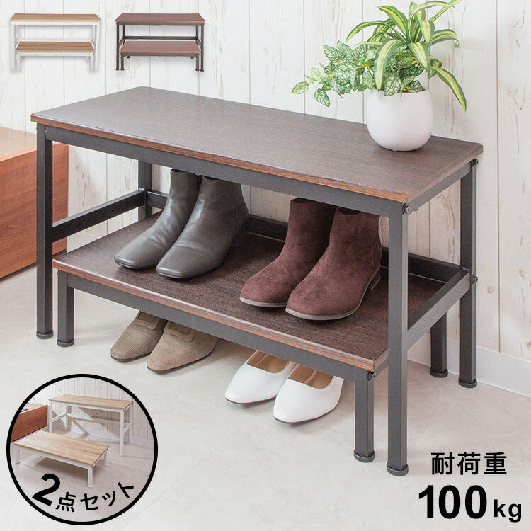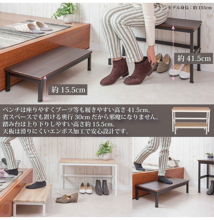 玄関 収納 スリッパラック ステップ台&ベンチ 2セット 子供 介護 いす ダイニング サイドテーブル 飾り棚 サポートチェア 玄関ベンチ 収納ベンチ シェルフ(代引不可)