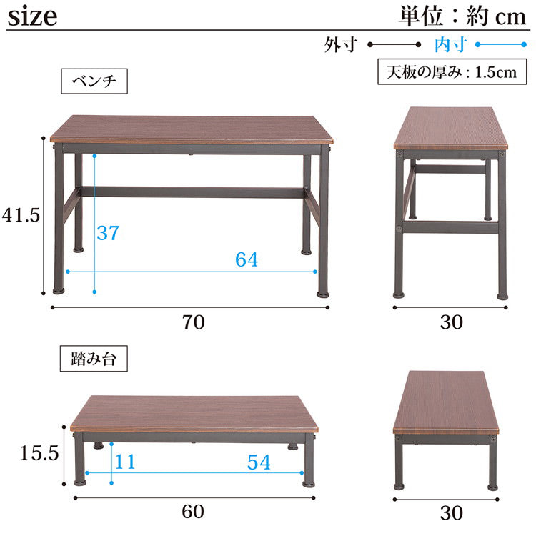 ベンチ:幅70×奥行30×高さ41.5 cm