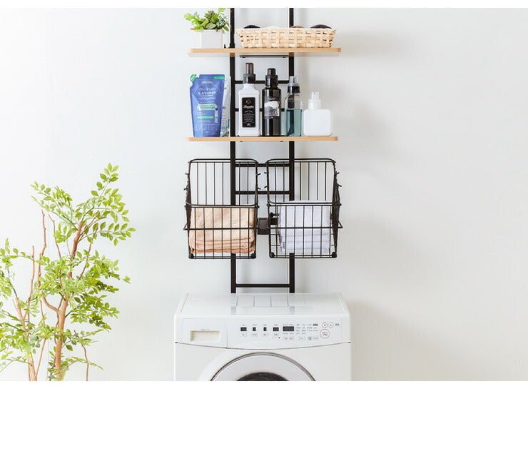 突っ張り式 棚2枚 バスケット2個 洗濯機ラック つっぱり 洗濯機 ラック 収納 収納棚 ランドリー ランドリーラック 収納ラック(代引不可)