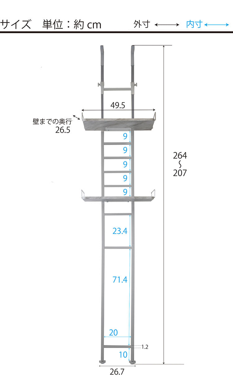 本体:幅49.5×奥行26.5×高さ207~264 cm
