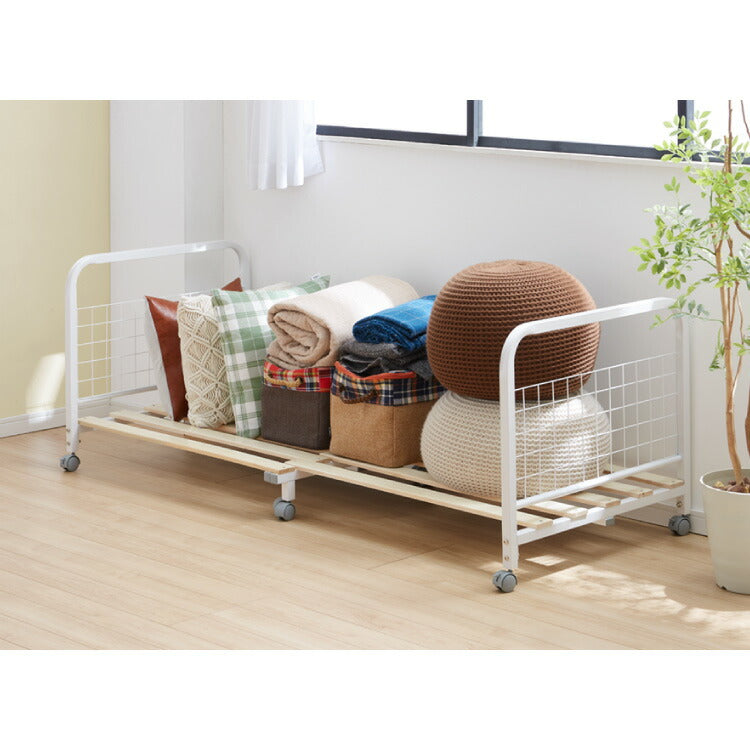 すのこ状の底面が自在に伸縮し最大幅が163cmで収納力も抜群です。