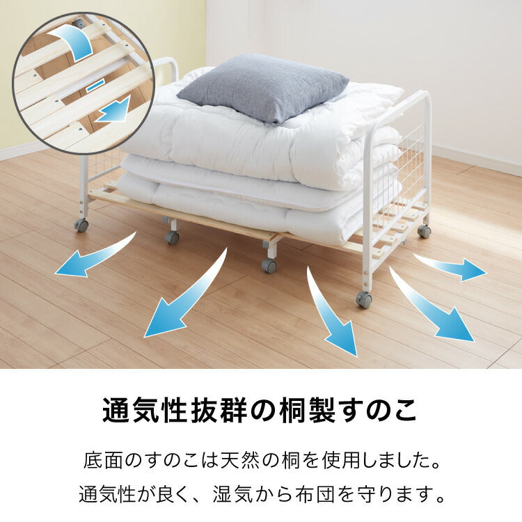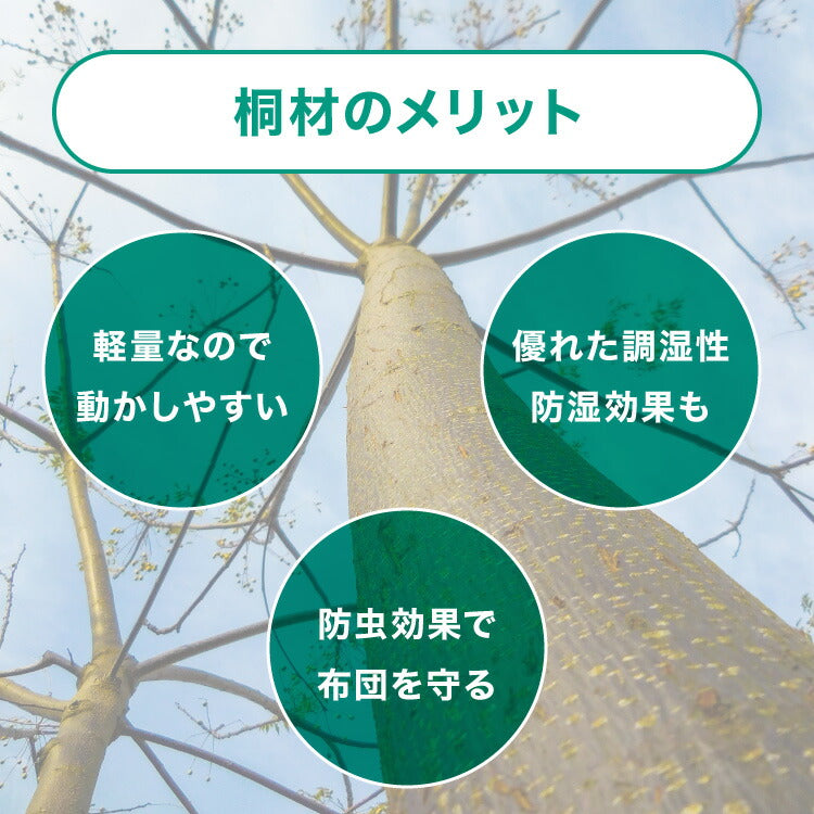 放湿性に優れた桐材すのこは、通気性に優れ湿気から布団を守ります。