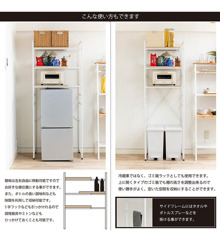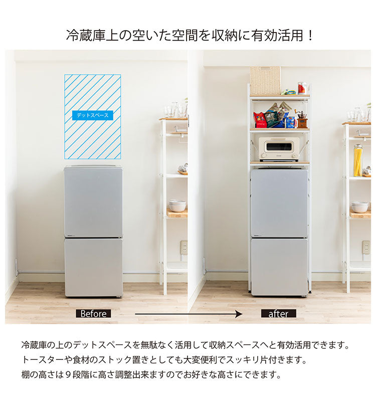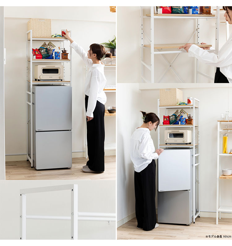 ・棚板の高さを調整して、冷蔵庫上のデッドスペースを有効に活用していただけます。
