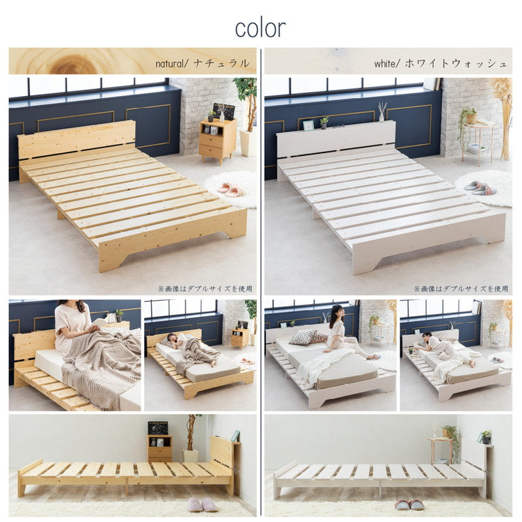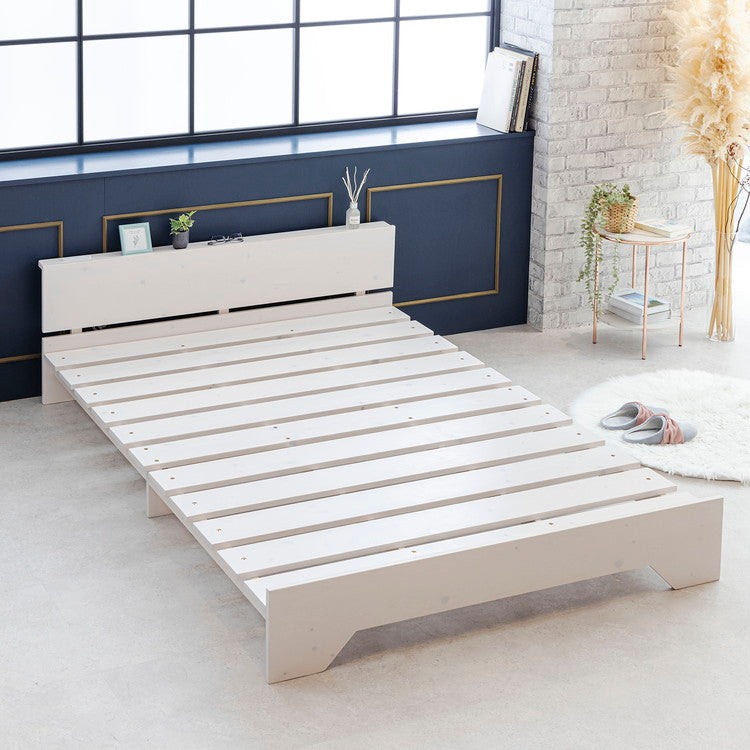ベッド 宮棚&2口コンセント付 天然木 北欧パイン 宮付き ダブルベッド ベッドフレーム すのこベッド すのこベット ベット ベットフレーム(代引不可)