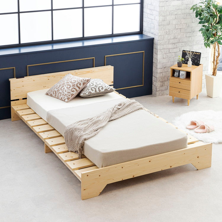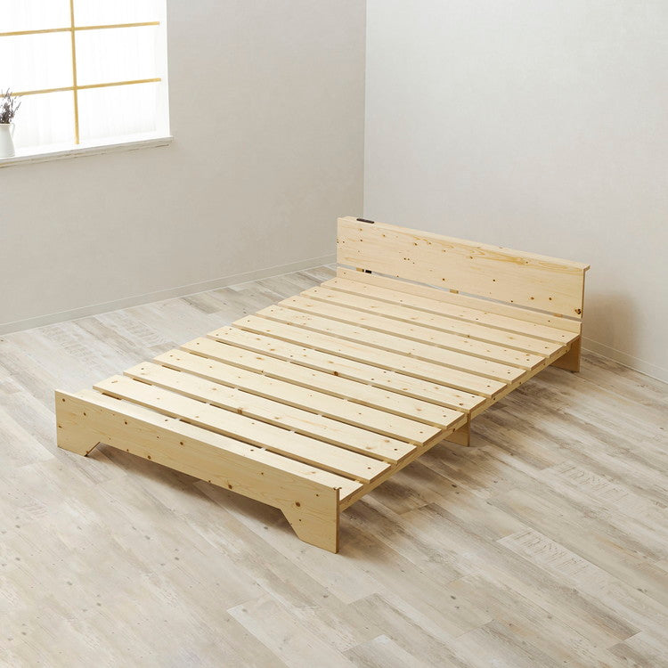 ベッド 宮棚&2口コンセント付 天然木 北欧パイン 宮付き セミダブルベッド ベッドフレーム すのこベッド すのこベット ベット ベットフレーム(代引不可)