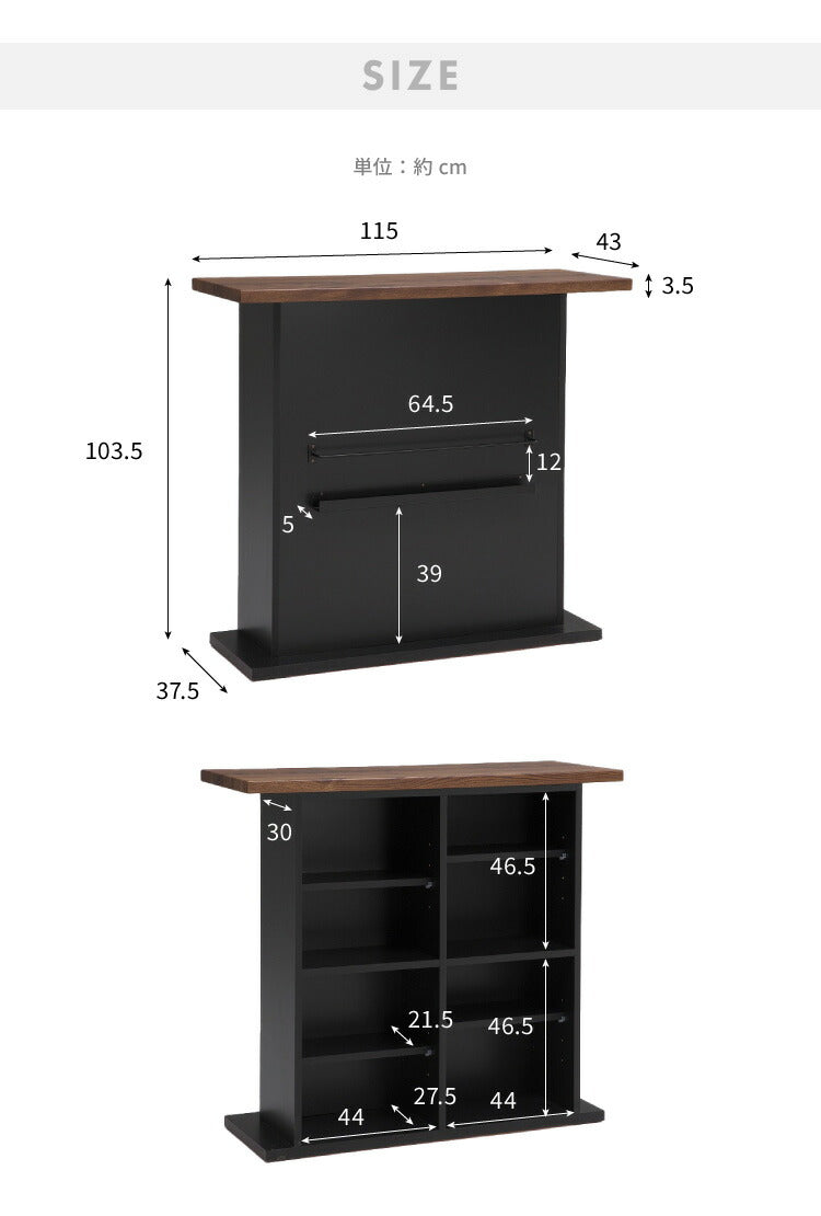 バーカウンター 幅115cm 日本製 完成品 ダイニングボード カウンターテーブル キッチンカウンター おしゃれ モダン キッチン 収納 バーテーブル (代引不可)