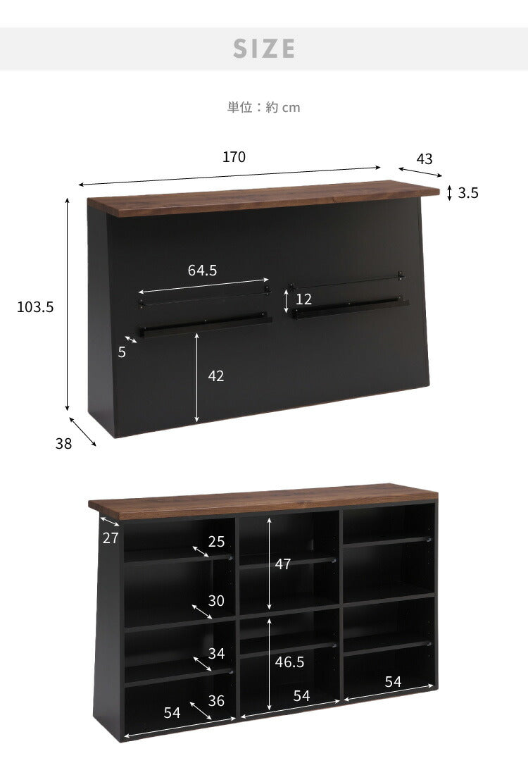 バーカウンター 幅170cm 日本製 完成品 開梱設置無料 ダイニングボード カウンターテーブル キッチンカウンター おしゃれ モダン キッチン 収納 バーテーブル (代引不可)