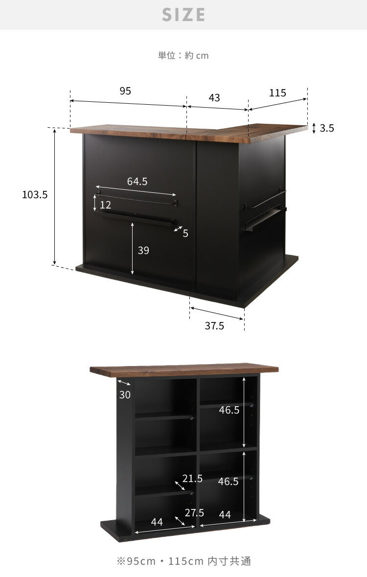 幅115タイプ:幅115cm×奥行43cm×高さ103.5cm