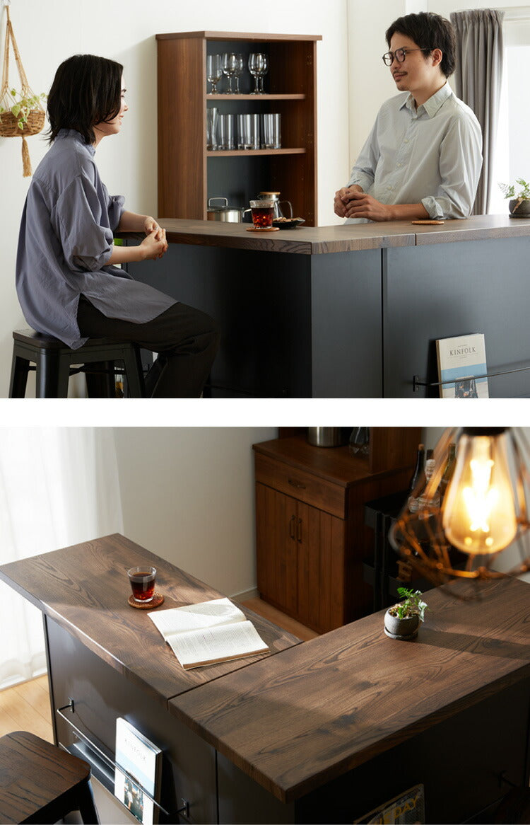 バーカウンター テーブル L字 日本製 完成品 高さ104 カウンターテーブル バーテーブル カウンター下収納 開梱設置無料 キッチン 収納 バーテーブル(代引不可)