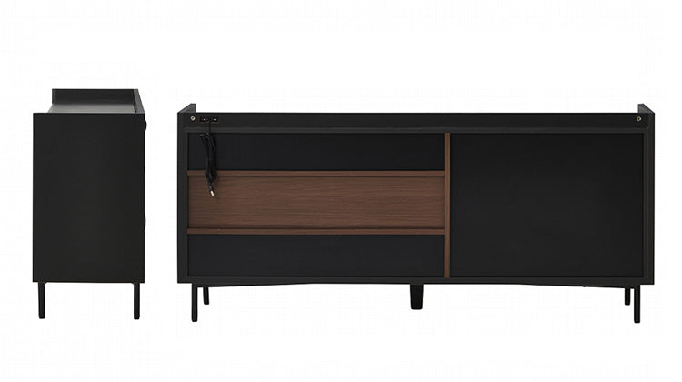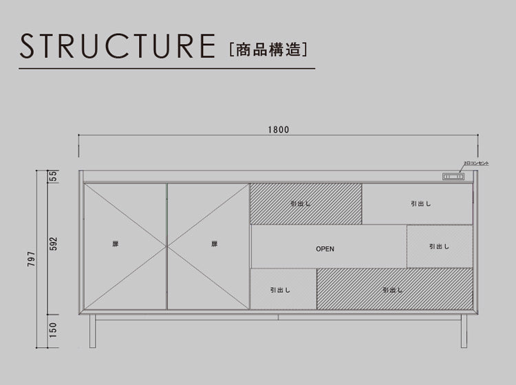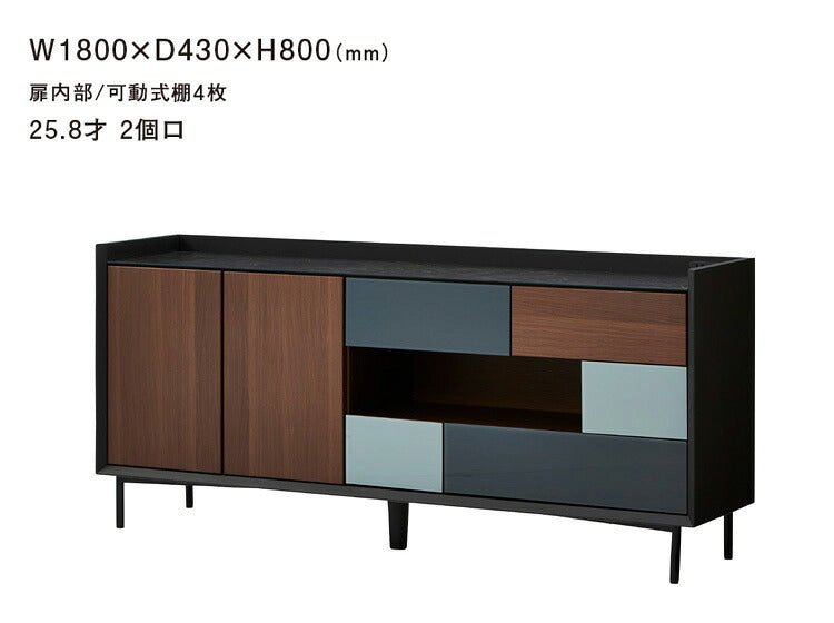 キャビネット 完成品 幅180 木目×ガラスデザイン ガラス天板 リビングボード 2口コンセント チェスト スチール脚 扉 引き出し 収納 おしゃれ モダン(代引不可)