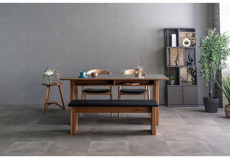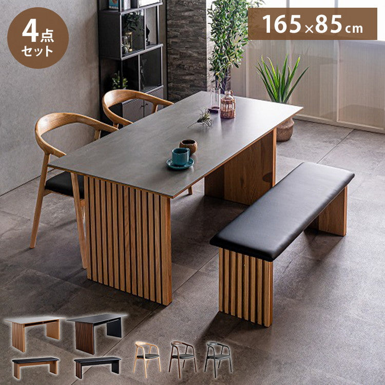 ダイニングセット 4点セット テーブル ベンチ チェア2脚 棚付き 収納 ダイニングテーブル セラミック 木製 オーク ウォールナット おしゃれ モダン 和風 リビング 食卓 ダイニングチェア 椅子(代引不可)