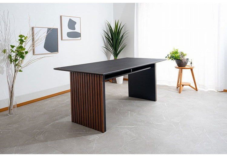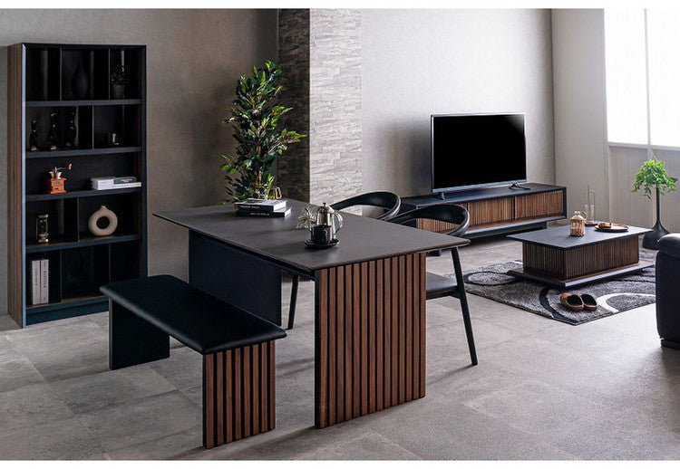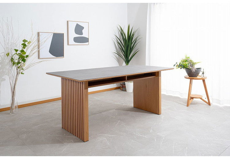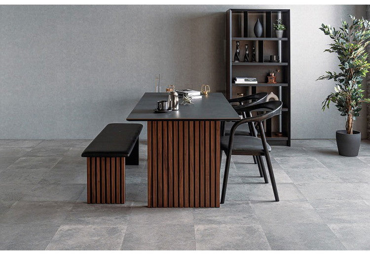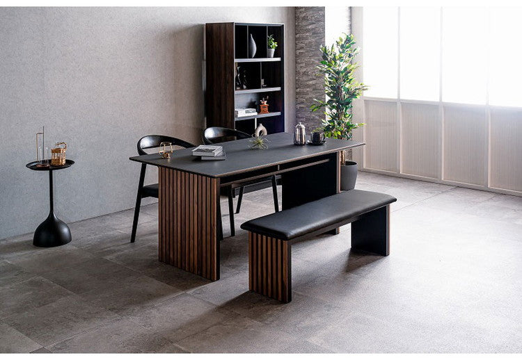 セラミックと突板の異素材融合。格子状の脚が雰囲気を醸し出す唯一無二なデザインの和モダンダイニングテーブル。