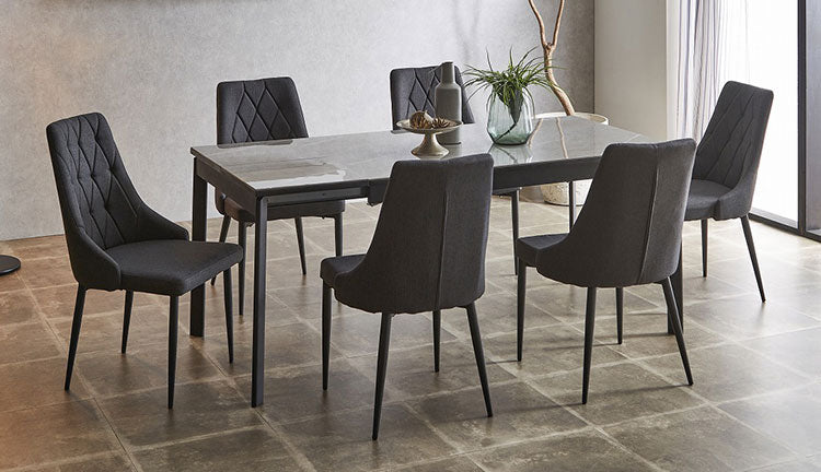 セラミック 伸縮 ダイニングセット 4人掛け 5点セット ダイニングテーブルセット 伸長式 幅130~幅170 ファブリック 鏡面 ダイニングチェア 耐水 耐熱 大理石調(代引不可)