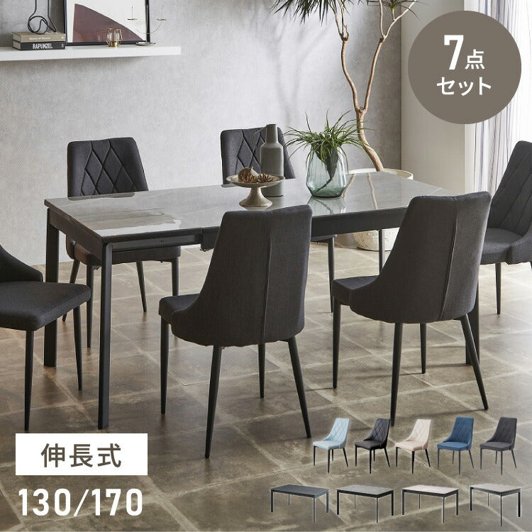 セラミック 伸縮 ダイニングセット 6人掛け 7点セット ダイニングテーブルセット 伸長式 幅130~幅170 ファブリック 鏡面 ダイニングチェア 耐水 耐熱 大理石調(代引不可)