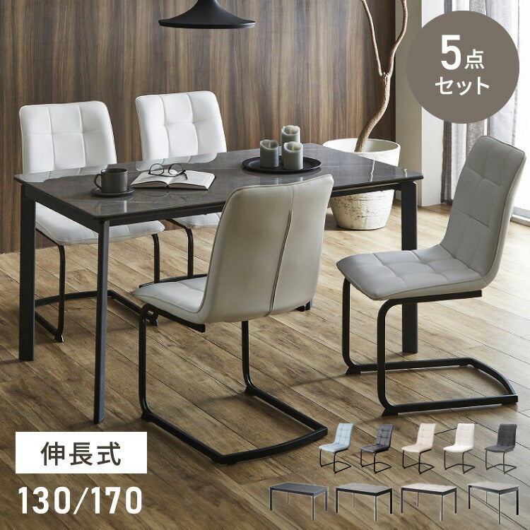 セラミック 伸縮 ダイニングセット 4人掛け 5点セット ダイニングテーブルセット 伸長式 幅130~幅170 合皮 デザインチェア 鏡面 ダイニングチェア 耐水 耐熱 大理石調(代引不可)