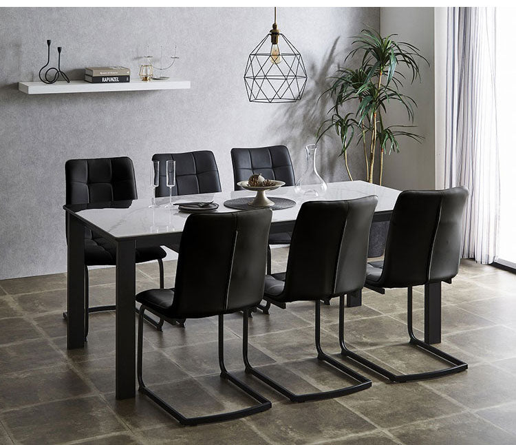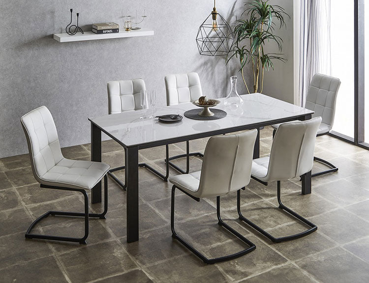 セラミック 伸縮 ダイニングセット 6人掛け 7点セット ダイニングテーブルセット 伸長式 幅130~幅170 合皮 デザインチェア 鏡面 ダイニングチェア 耐水 耐熱 大理石調(代引不可)