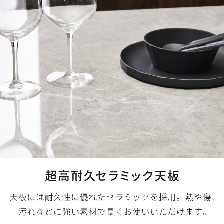 セラミック ダイニングテーブル 単品 伸縮 幅130~幅170 4人掛け 6人掛け 大理石調 伸縮テーブル 伸長式 ダイニング 耐水 耐熱 白 鏡面 傷がつきにくい(代引不可)