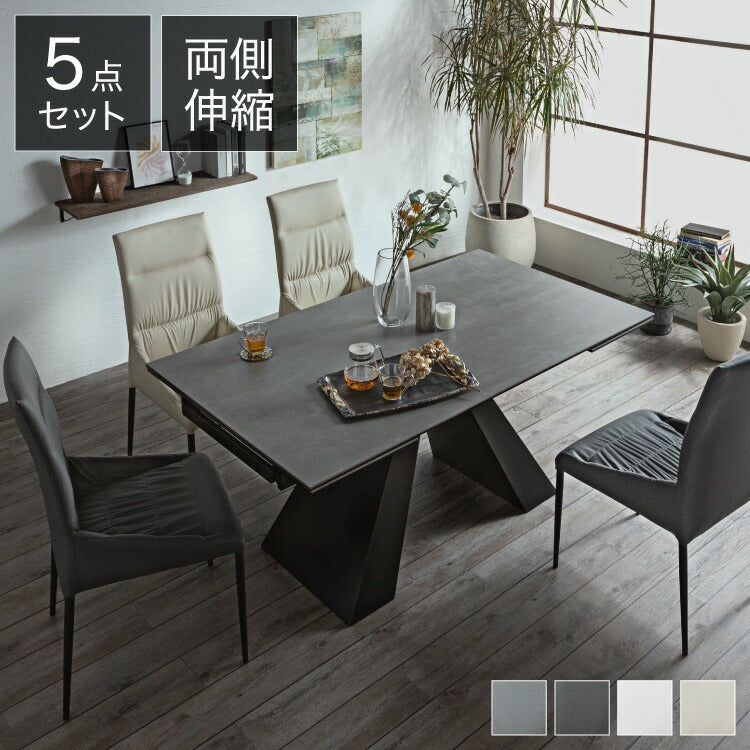 セラミック 両側伸縮 ダイニングセット 4人掛け 5点セット ダイニングテーブルセット 伸長式 幅160~幅236 合皮 レザー デザインチェア 鏡面 ダイニングチェア 耐水 耐熱 石目調(代引不可)
