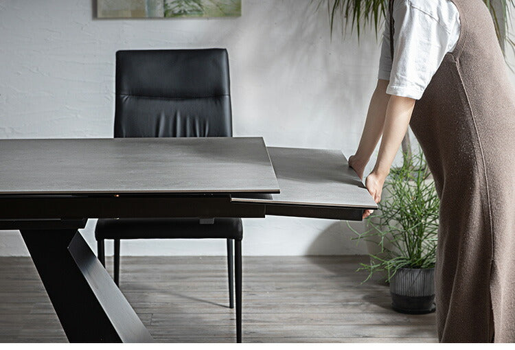 テーブル:セラミック天板トップ、耐熱・防汚・キズに強くお手入れラクラク。簡単伸張でサイズ160センチから236センチへ早変わり!