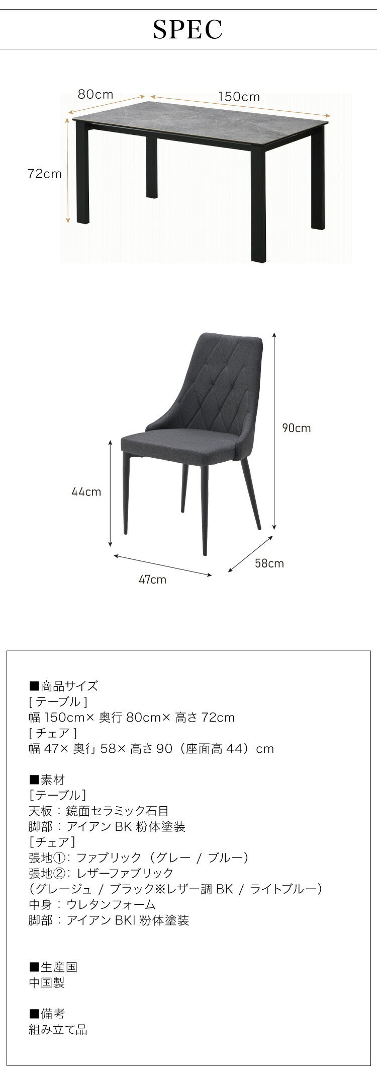 チェア:幅47×奥行58×高さ90(座面高44)cm