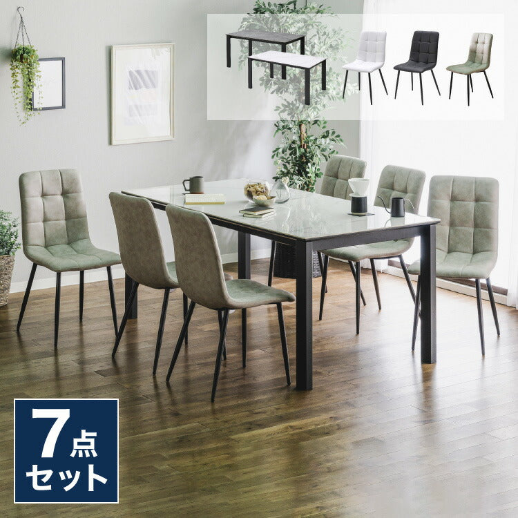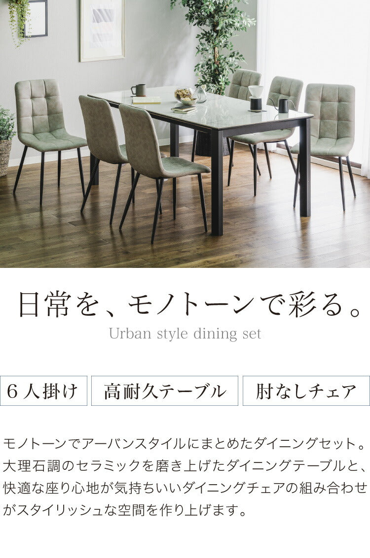 セラミック ダイニングセット 6人掛け 7点セット ダイニングテーブルセット 幅180 ファブリック アイアン 鏡面 ダイニングチェア 耐水 耐熱 大理石調(代引不可)