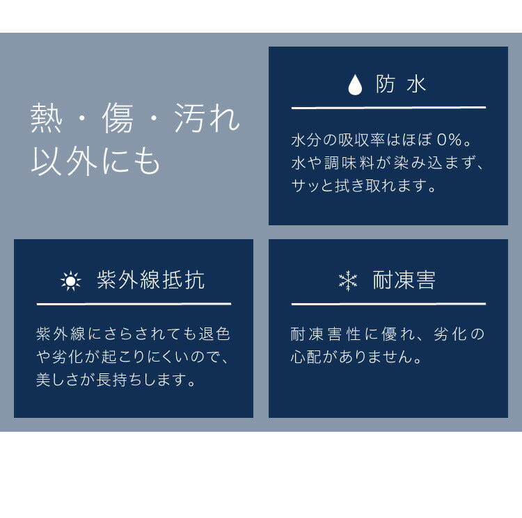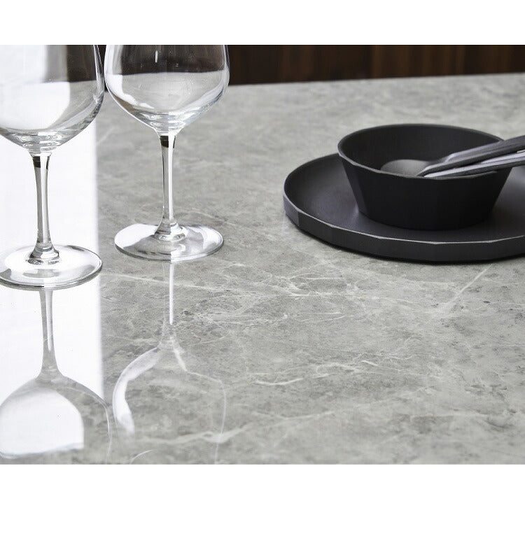 テーブルはデザイン性ある石目の鏡面セラミック天板採用。