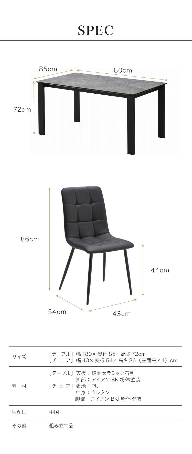 テーブル:幅180cm×奥行85cm×高さ72cm