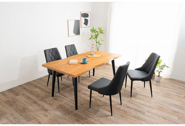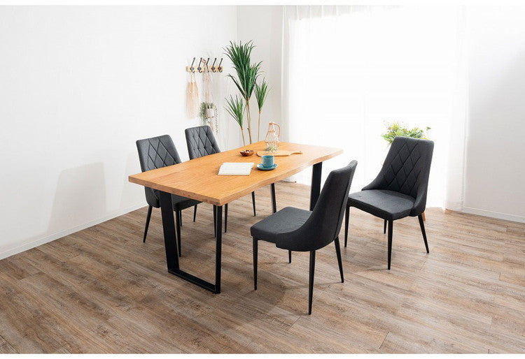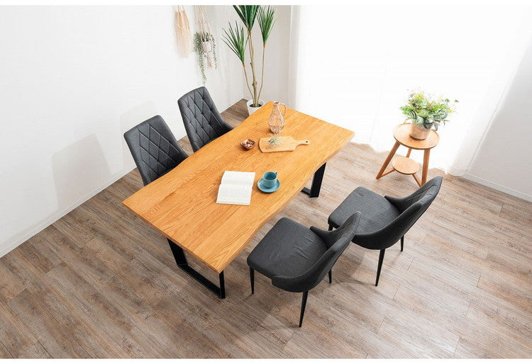 オーク無垢を使用した重厚感のある40mm厚天板。シンプルながらもデザイン性・耐久性のあるスチール製脚。木口も耳付き加工を施し、木本来の自然な風合いと温かみのある空間を演出できるダイニングテーブル。
