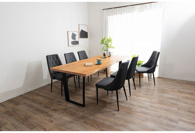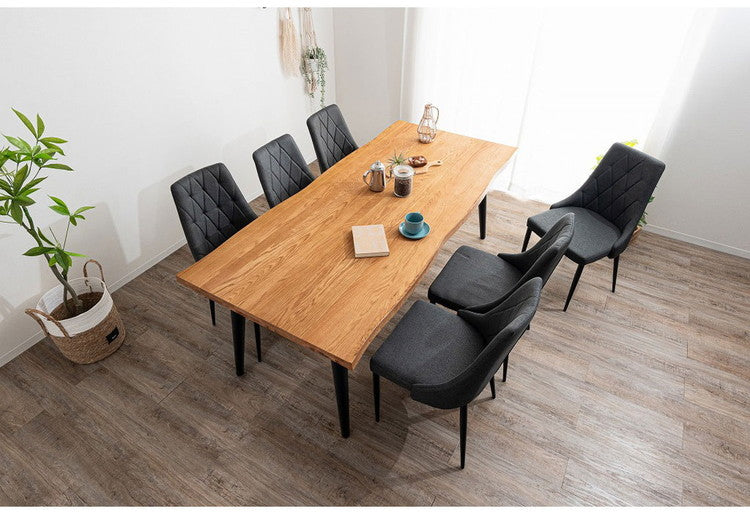 オーク無垢を使用した重厚感のある40mm厚天板。シンプルながらもデザイン性・耐久性のあるスチール製脚。木口も耳付き加工を施し、木本来の自然な風合いと温かみのある空間を演出できるダイニングテーブル。