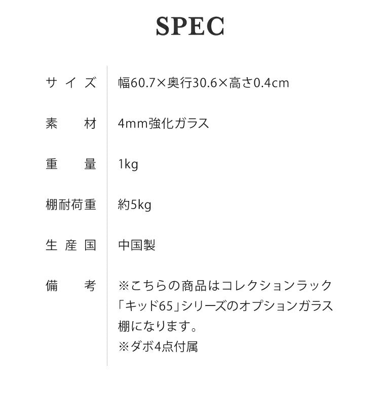 ※こちらの商品はコレクションラック「キッド65」シリーズのオプションガラス棚になります。