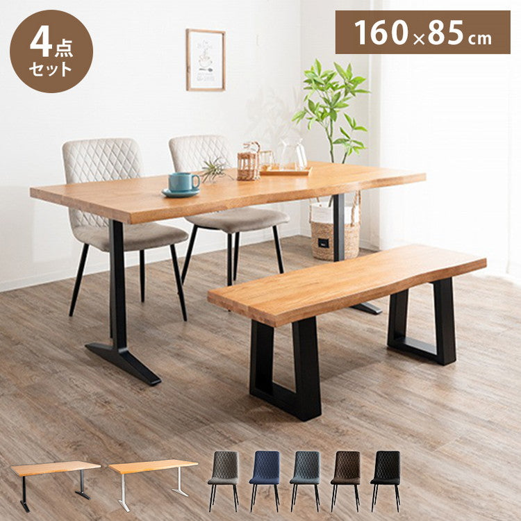 ダイニングセット 4点セットB T字脚テーブル ベンチ チェア2脚 木製 スチール オーク 重厚感 厚い 耐久性 おしゃれ 耳付き シンプル ナチュラル 自然 温かみ ステッチ リビング ダイニング 食卓 椅子(代引不可)