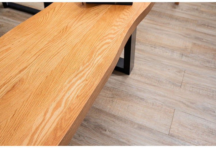 オーク無垢を使用した重厚感のある40mm厚天板。木口も耳付き加工を施し、木本来の自然な風合いと温かみのある空間を演出できるダイニングベンチ。
