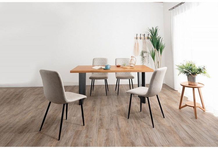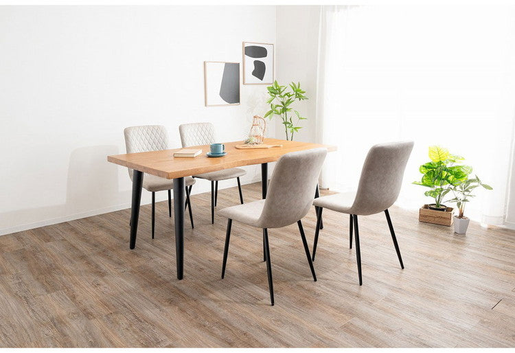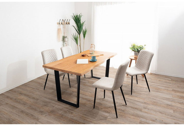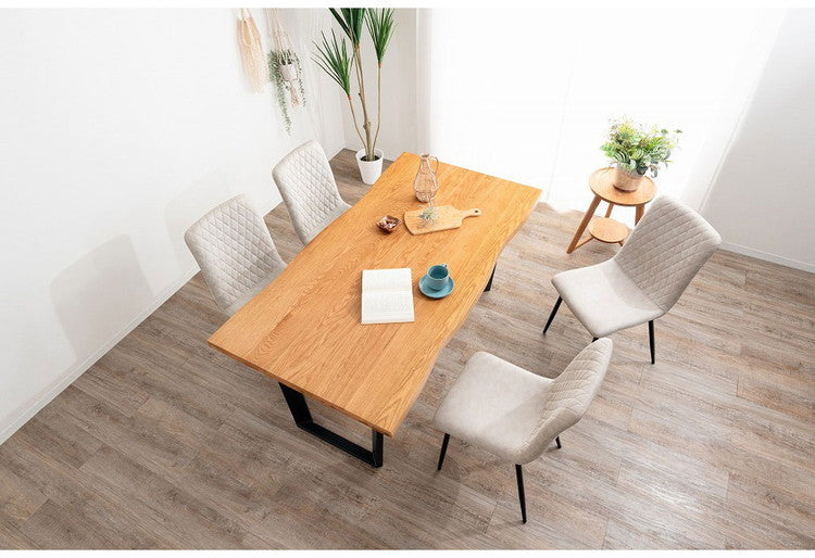 オーク無垢を使用した重厚感のある40mm厚天板。シンプルながらもデザイン性・耐久性のあるスチール製脚。木口も耳付き加工を施し、木本来の自然な風合いと温かみのある空間を演出できるダイニングテーブル。