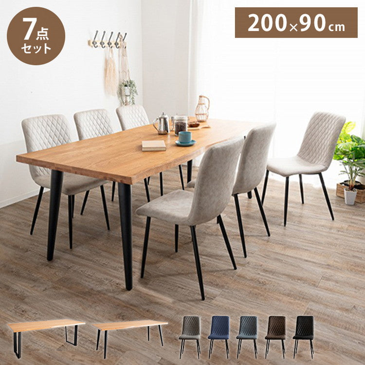 ダイニングセット 7点セットD スクエア/4本脚テーブル(大) チェア6脚 木製 スチール オーク 厚い 耐久性 おしゃれ 耳付き シンプル ナチュラル ステッチ リビング ダイニングテーブル 食卓 椅子(代引不可)