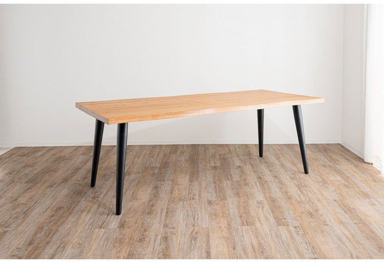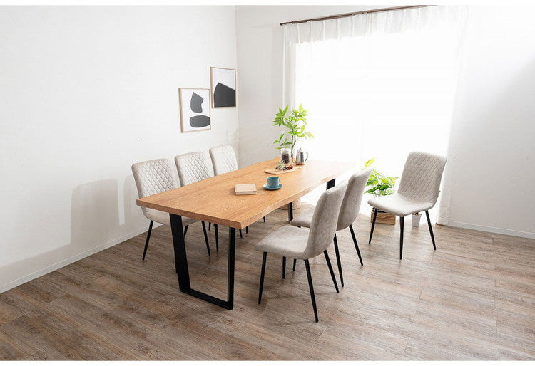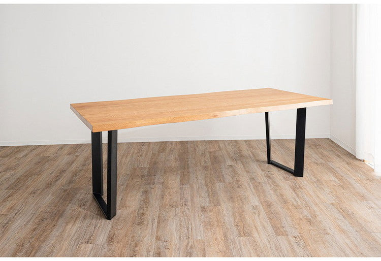 オーク無垢を使用した重厚感のある40mm厚天板。シンプルながらもデザイン性・耐久性のあるスチール製脚。木口も耳付き加工を施し、木本来の自然な風合いと温かみのある空間を演出できるダイニングテーブル。