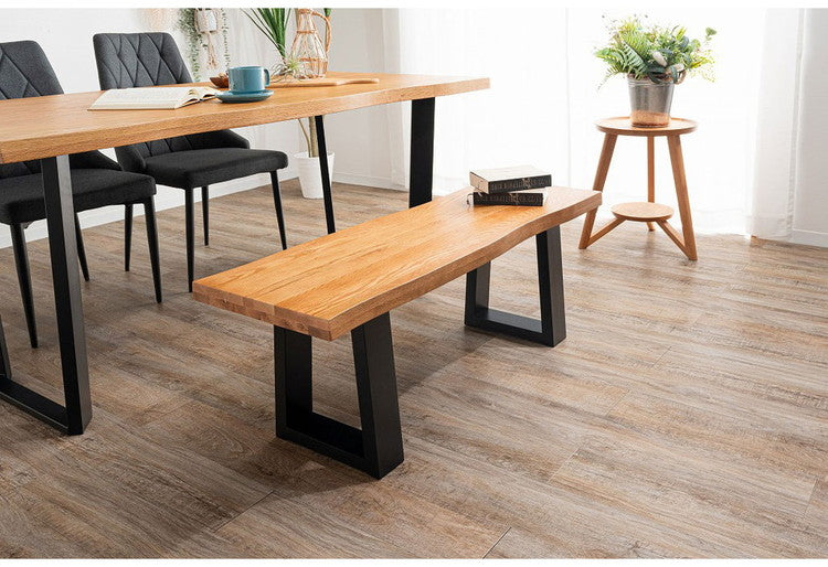 木口も耳付き加工を施し、木本来の自然な風合いと温かみのある空間を演出できるダイニングベンチ。
