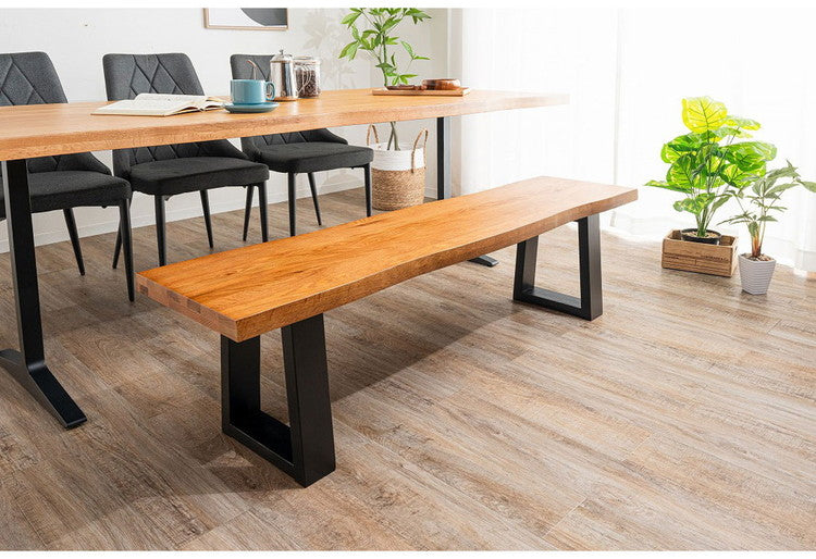 木口も耳付き加工を施し、木本来の自然な風合いと温かみのある空間を演出できるダイニングベンチ。