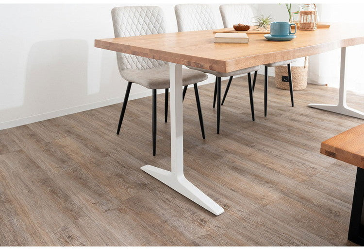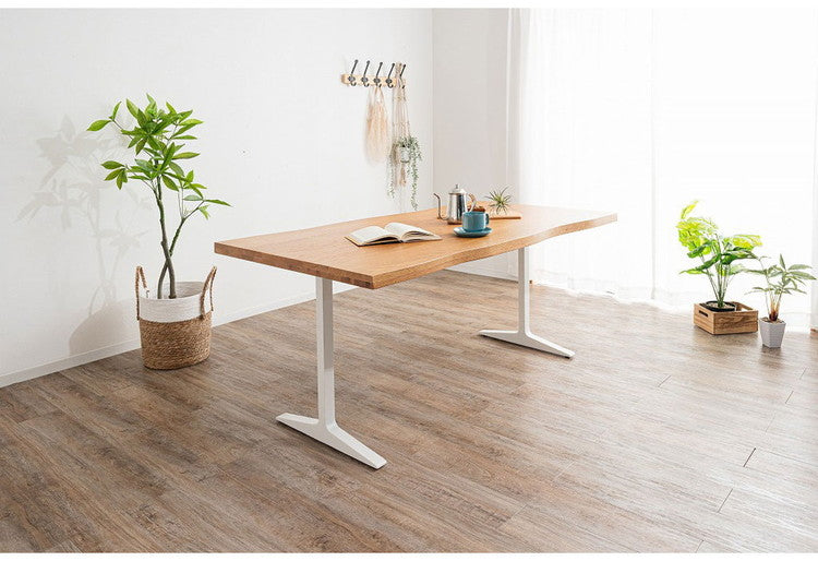 ダイニングテーブル T字脚 160×85cm 木製 スチール オーク 重厚感 厚天板 耐久性 おしゃれ 耳付き シンプル ナチュラル 自然 温かみ リビング ダイニング 食卓(代引不可)