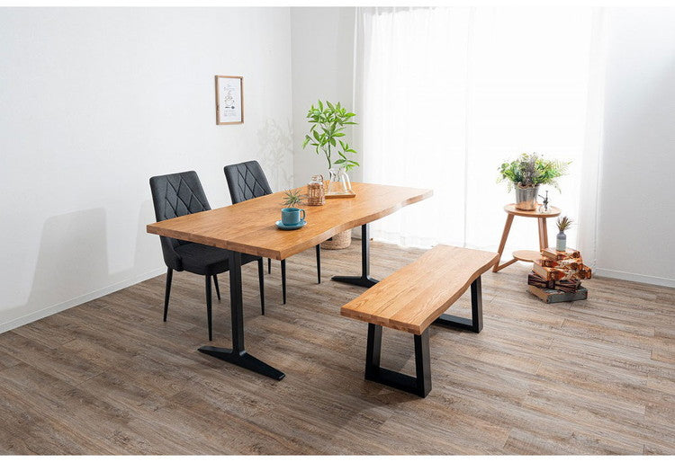 木口も耳付き加工を施し、木本来の自然な風合いと温かみのある空間を演出できるダイニングテーブル。