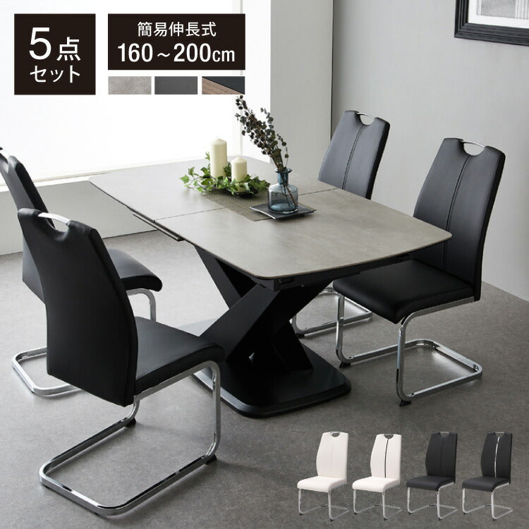 セラミック 伸縮 ダイニングセット 4人掛け 5点セット ダイニングテーブルセット 伸長式 幅160~幅200 合皮 アイアン 鏡面 ダイニングチェア 耐水 耐熱 石目調(代引不可)