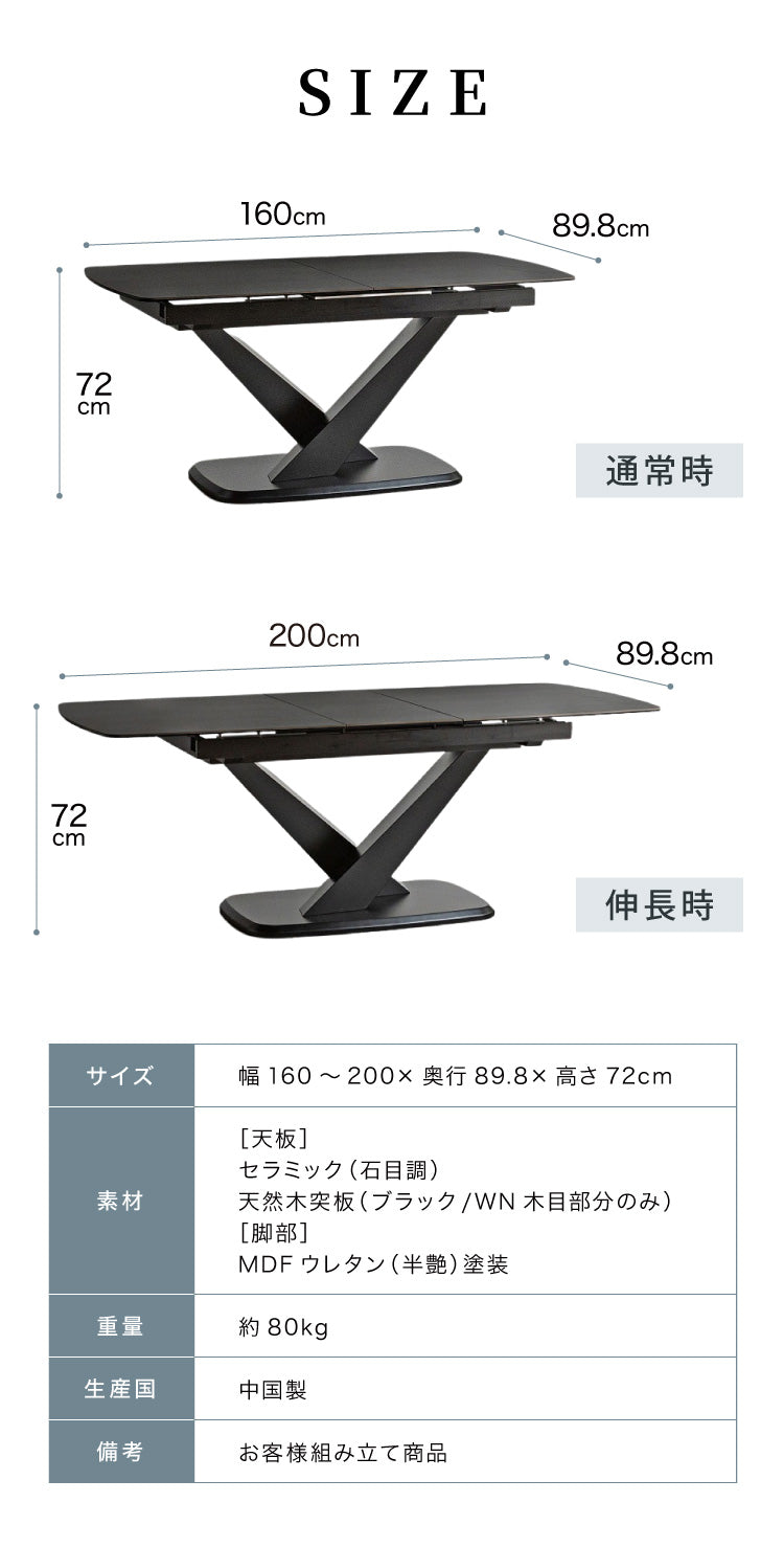 幅160cm~200cm×奥行89.8cm×高さ72cm