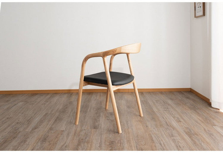 アッシュ無垢/ラバーウッド無垢を贅沢に使用したチェア。座面を広く設計しゆとりのある座り心地を実現しつつ、重たさを感じさせないスタイリッシュなデザイン。