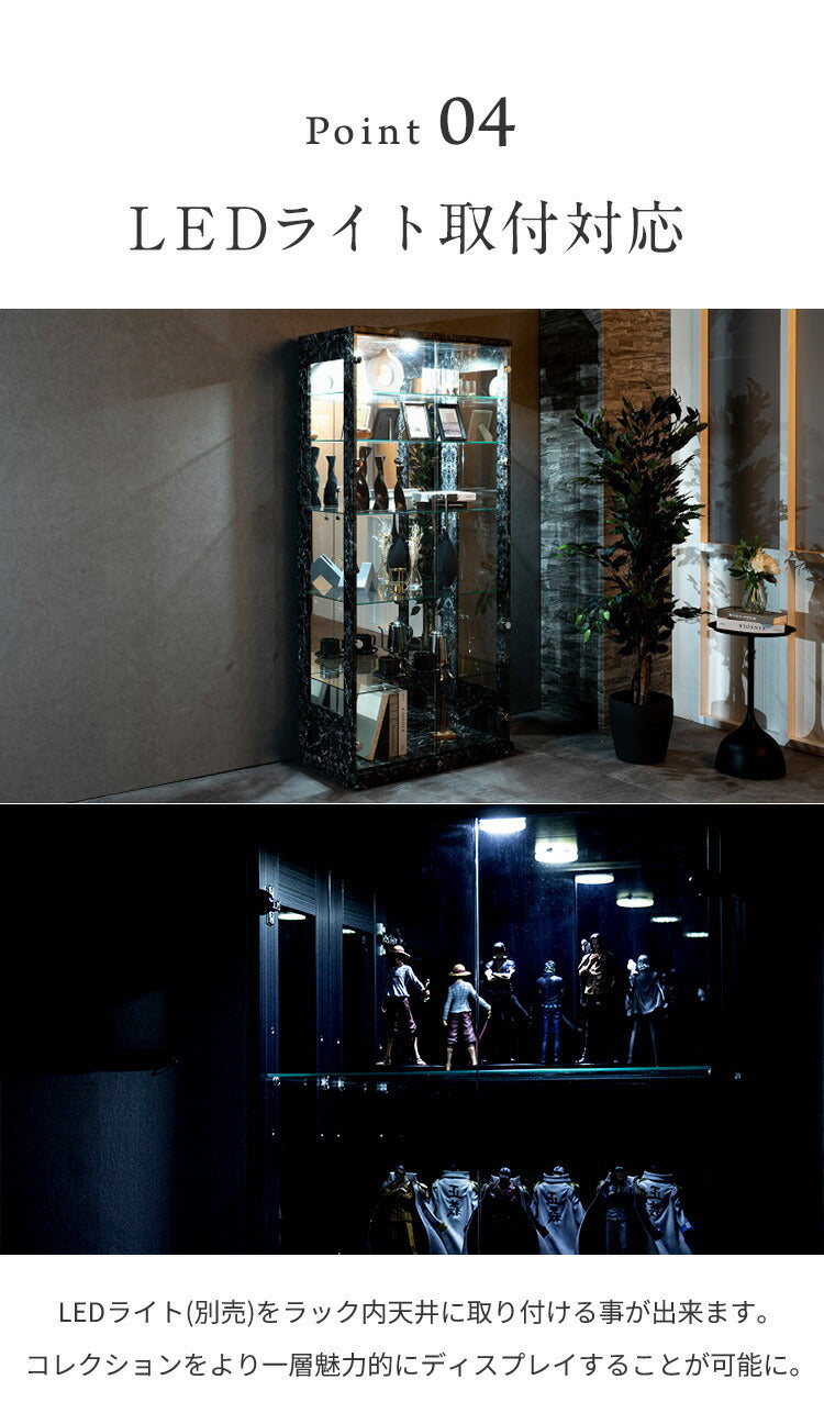 オプションでLEDライト/棚ガラス追加可能です。※別売り