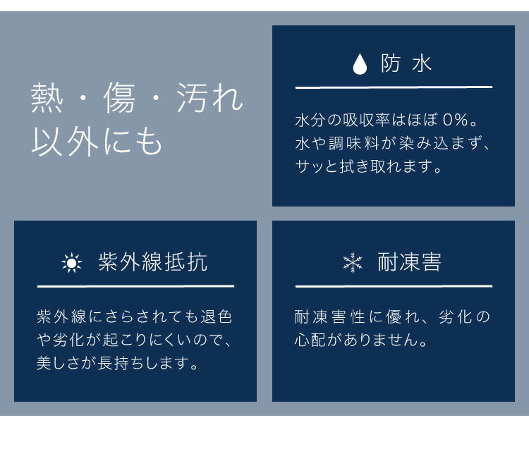 傷に強く、耐熱性、耐水性を兼ね備えた高級感があります。