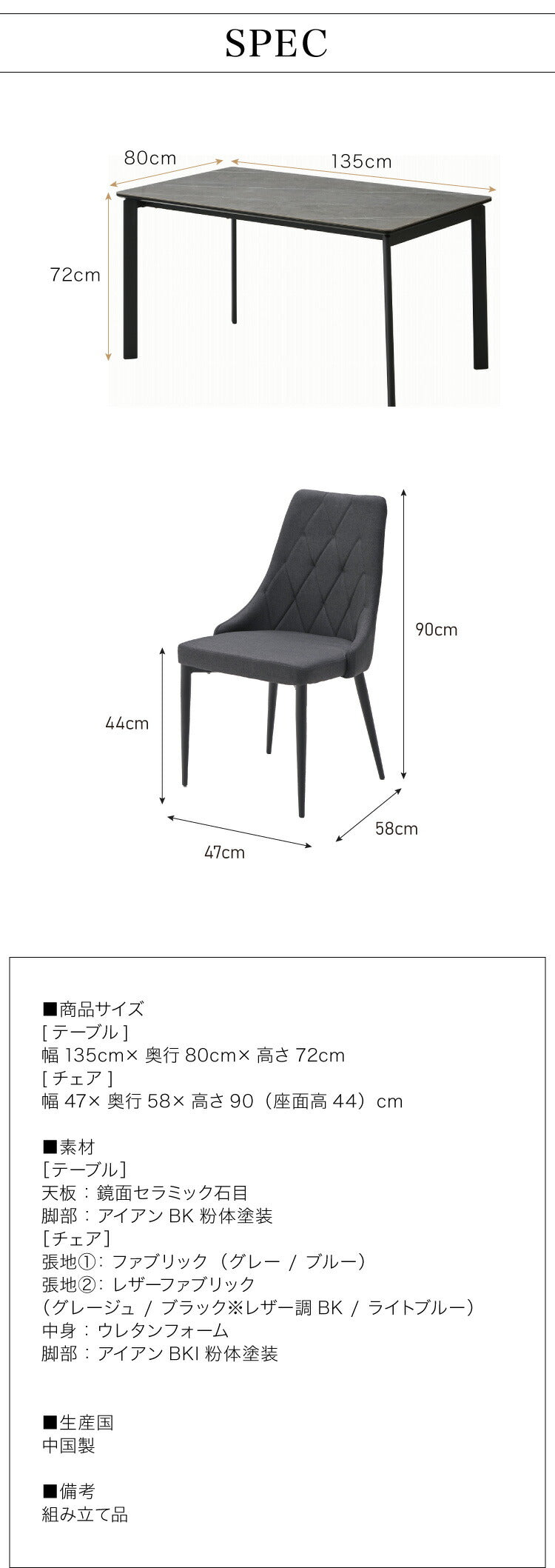 [チェア]グレー / ブルー / グレージュ / レザー調BK※レザー調ブラック / ライトブルー