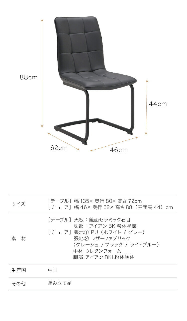 [チェア]幅46×奥行62×高さ88(座面高44)cm