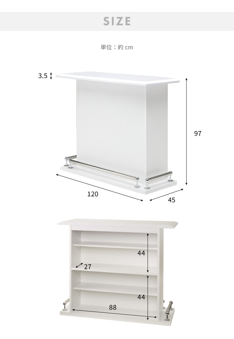 バーカウンター 幅120cm 高さ97 日本製 完成品 おしゃれ カウンターテーブル キッチンカウンター 収納 キッチン 収納 バーテーブル (代引不可)