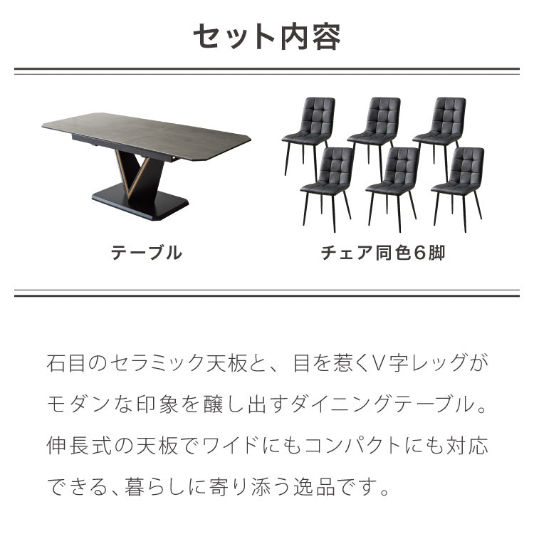 セラミック 伸長式ダイニングテーブルセット 幅160~幅200 伸縮 ダイニング7点セット 4人掛け 6人掛け 伸縮テーブル モダン 伸長式 ダイニング 耐水 耐熱 白 艶消し 傷がつきにくい おしゃれ(代引不可)