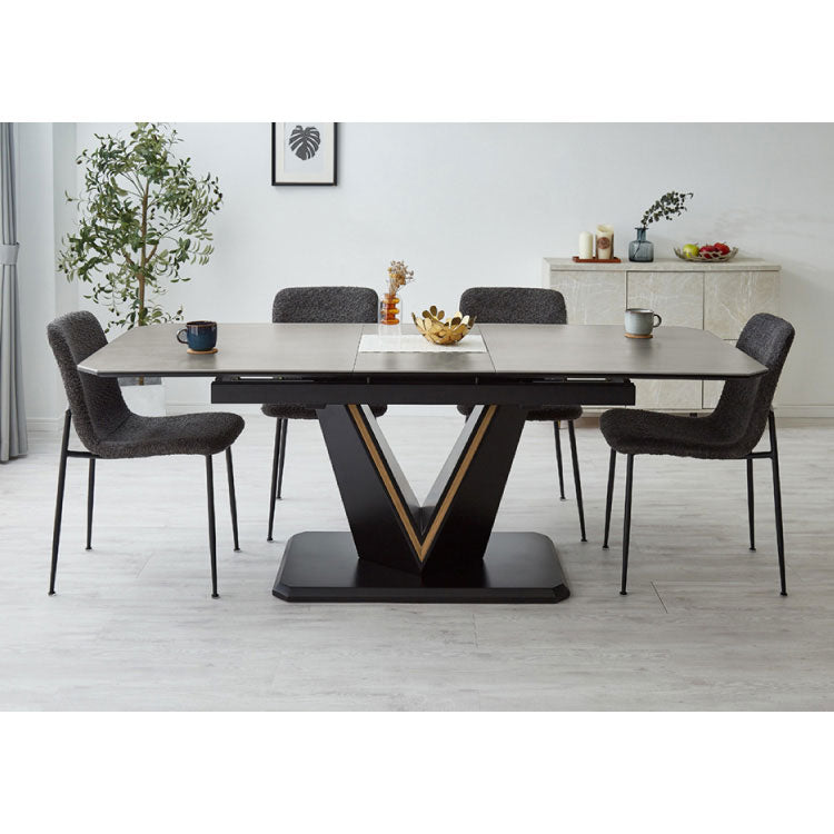 人数やお部屋に合わせ160cmまたは200mで使用可能な伸長テーブル。デザイン性ある石目のセラミック天板を採用。